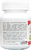 Каждая таблетка 500 мг содержит: Гудучи/Тиноспора сердцелистная (Tinospora cordifolia), Амла/Эмблика (Emblica officinalis), Харитаки/Терминал хебула (Terminalia chebula) - 167 мг, Бибхитаки/Терминалия белерика (Terminalia bellerica), Шуддха Гуггул (Commiphora mukul), Имбирь (Zingiber officinale), Перец черный (Piper nigrum), Пиппали/Перец длинный (Piper longum), Виданга (Vaividanga Churna), Виданга/Эмбелия кислая (Embelia ribes), Дати (Baliospermum montanum), Нисот (Operculina turpethum).